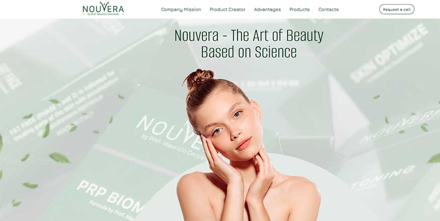 Для международного бренда NouVera Aesthetics был разработан корпоративный сайт, ориентированный на презентацию продуктов и формирование доверия со стороны специалистов в сфере эстетической медицины. Основная задача — показать философию бренда, экспертность и направления работы.