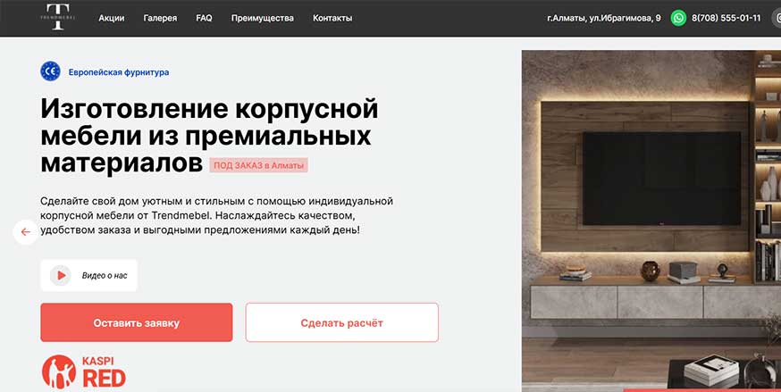 Да, лендинг по корпусной мебели хорошо работает и в SEO по низко- и среднечастотным запросам, и в контекстной рекламе по целевым фразам «изготовление корпусной мебели на заказ в Алматы» и похожим.